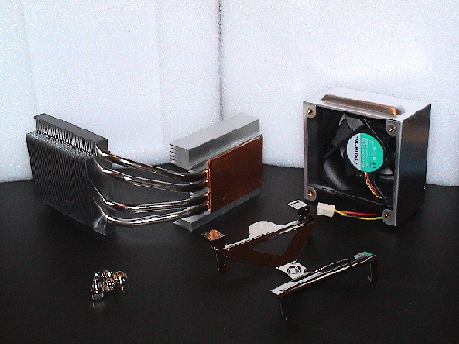 Auf jeden Fall macht die Heatpipe, deren unteres Kühlerauflager aus Kupfer besteht, einen verarbeitungstechnisch sehr guten Eindruck. Kein Ruckeln und Ziehen kann die Konstruktion dazu bewegen sich auch nur einen Millimeter zu verschieben. Sehr gut verarbeitet, hervorragende Materialien und präzise gearbeitete Einzelteile : Der erste Eindruck (abgesehen vom Lüfter) ist ne glatte "Eins".