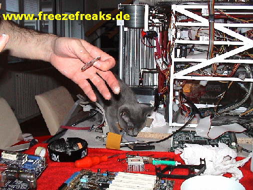 Falls Ihr Euch jetzt immer fragt: "Warum macht der Typ die Peltiers immer so schlecht ?" dann habt Ihr jetzt genau den Grund entdeckt, warum man mit den Dingern so vorsichtig sein muß. Ich bastel nicht erst seit gestern damit rum, aber selbst mir passiert hin und wieder ein kleines "Mißgeschick", insbesondere bei neuen Cases. Jedes System hat seine eigenen Problembereiche im Zusammenspiel mit einem Peltier, von der Lage des Motherboards (waagrecht oder stehend) bis zur Frage der idealen Entlüftung ist jeder Fall individuell zu lösen und oft kommt es vor, daß man sich am Ende darüber ärgert, nicht besser Bescheid gewußt zu haben.