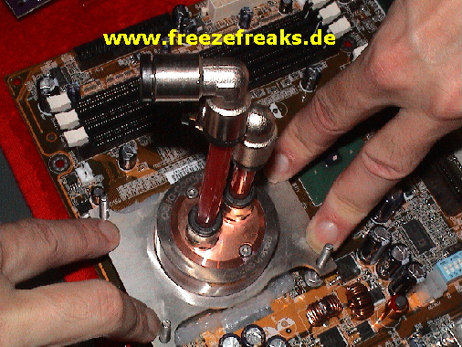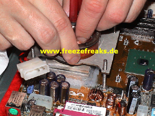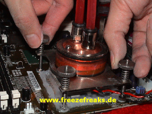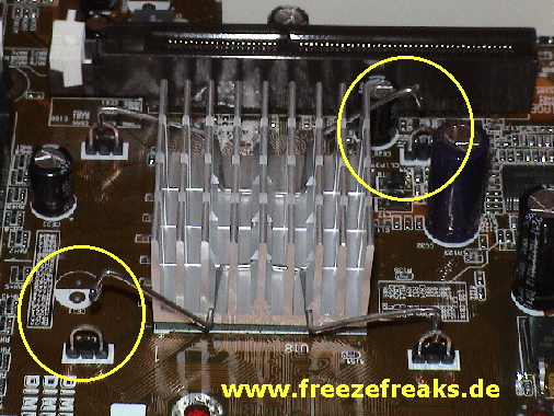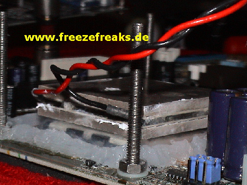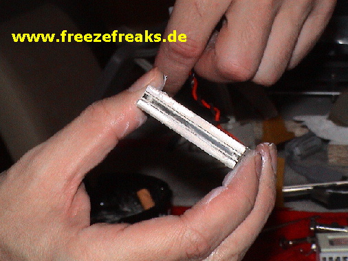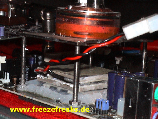 1. Das Peltier immer genau SO wie beim Test wieder anschliessen. Also den Kabelverlauf merken. Am besten lötet Ihr einen Molexstecker an das Peltierkabelende und eine Molexbuchse an zwei vom Netzteil abgehende Kabel. So kann ein mögliches Umpolen trotz Einbau/Umbau/Auswechseln vermieden werden.